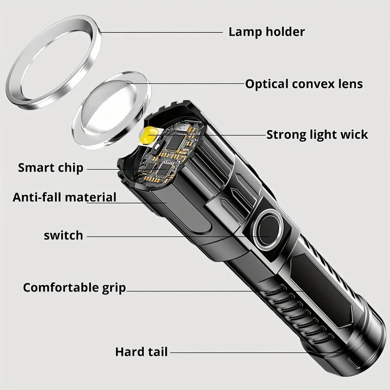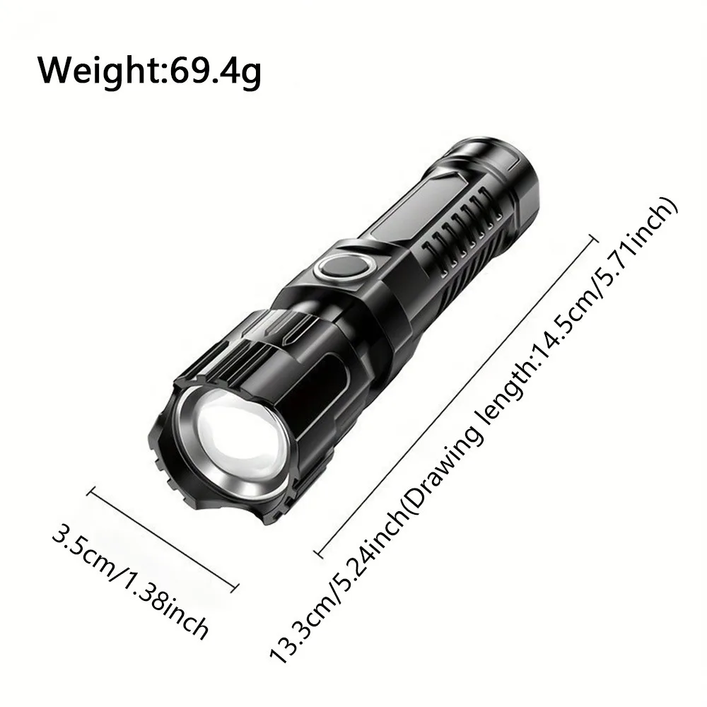 Conveniently rechargeable via USB, this flashlight offers endless use without the need for frequent battery replacements.