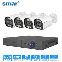 Smar 8CH POE NVR Set with 12 Inch LCD Monitor 4K 8MP 4MP POE Camera System Outdoor Ai Face Detection Audio Video H.265 CCTV Kit