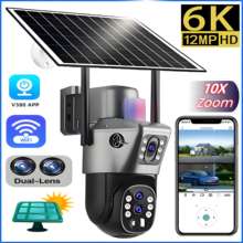 10X Zoom Wireless Outdoor WiFi Solar Camera 6K 12MP Dual Screen HD Color Night Vision PIR Auto Tracking PTZ IP Surveillance Cam