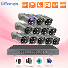 Techage 16CH 8MP 5MP POE Surveillance Camera CCTV System Camera H.265 4K Two-way Audio NVR Human Face Recognition Security Set
