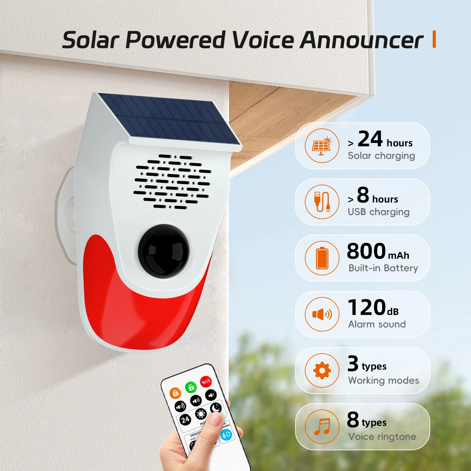 TAIBOAN Solar Infrared Motion Alarm Sensor With 120db Siren Strobe Light DIY Voice Announcer Outside Weatherproof PIR Sensor