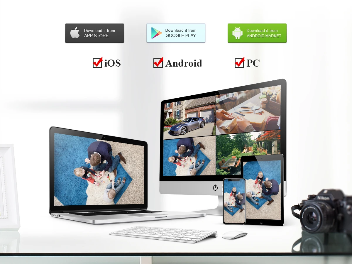 Support iOS and Android Device Access. Scan QR-Code to login. Download free app in Apple App store / Google play.