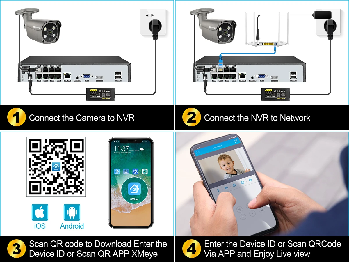 Easy setting , just 4 steps for mobile phone viewing (Android and iPhone iOS)