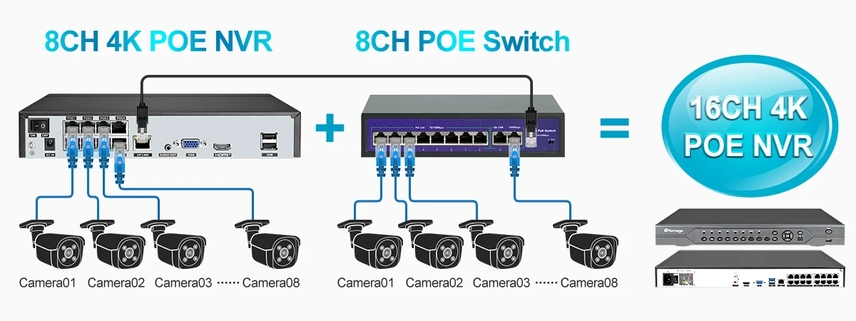 Save Money and Convenient, POE NVR = NVR + POE Switch