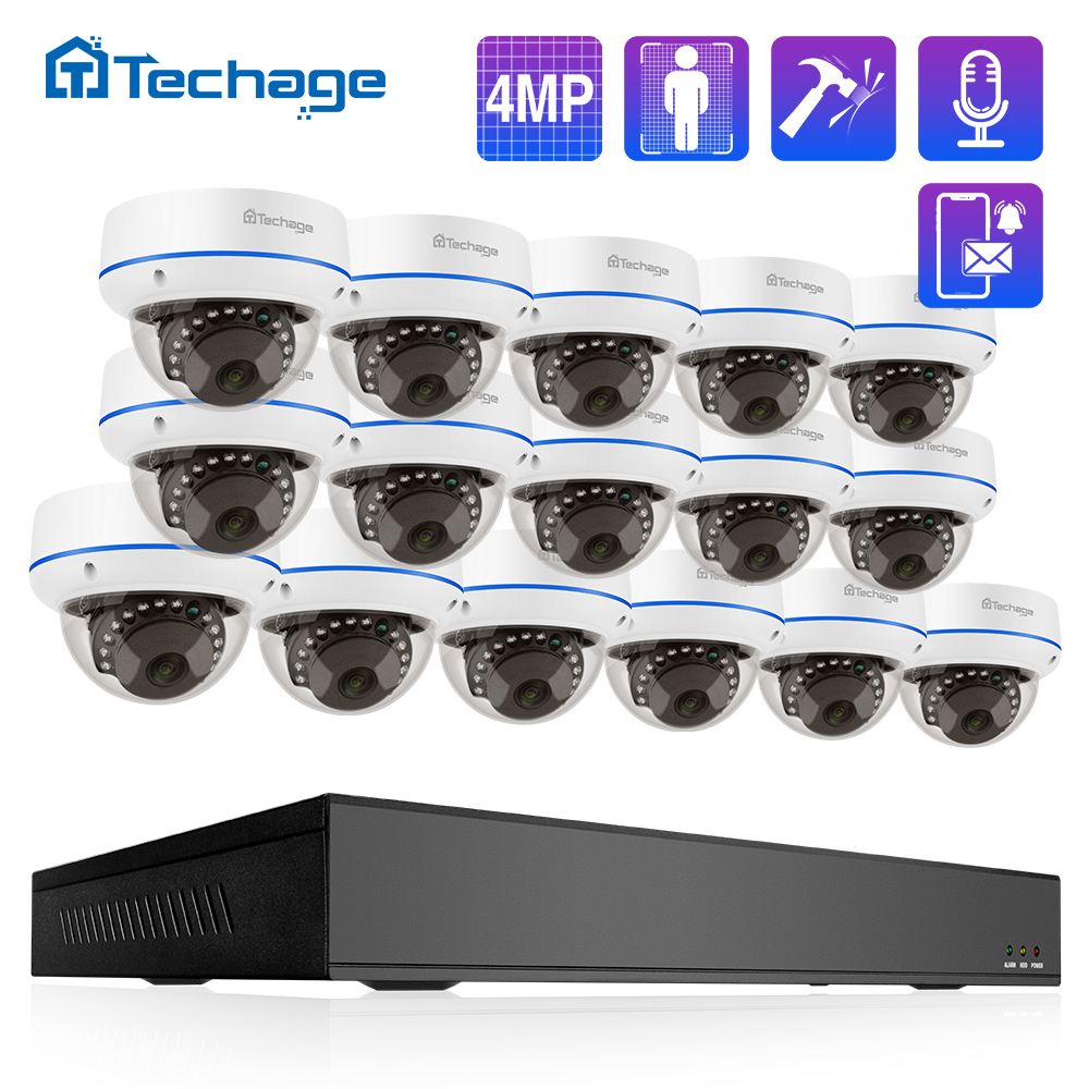 Techage HD 4MP 16CH POE Surveillance Camera Kit Home Security Indoor CCTV Video System Face Detection One-way Audio Vandalproof