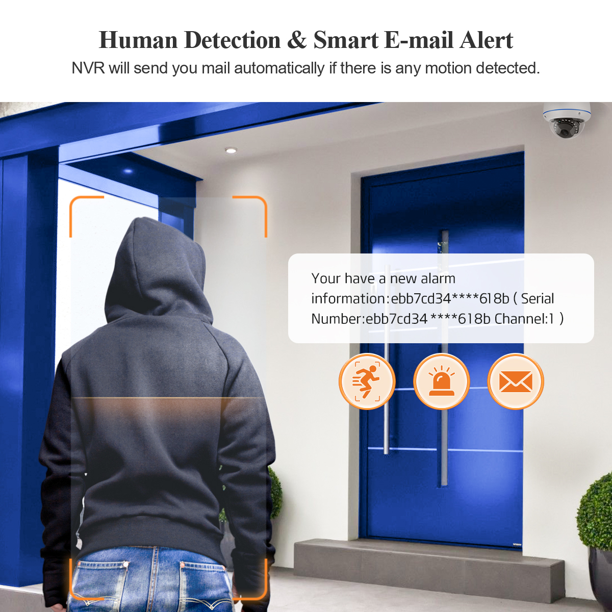 When Human is detected the NVR will save the footage into hard disk without missing any important events. You can even ensure that false alarms are avoided by setting the motion detection “mask” to block areas with constant movement.
