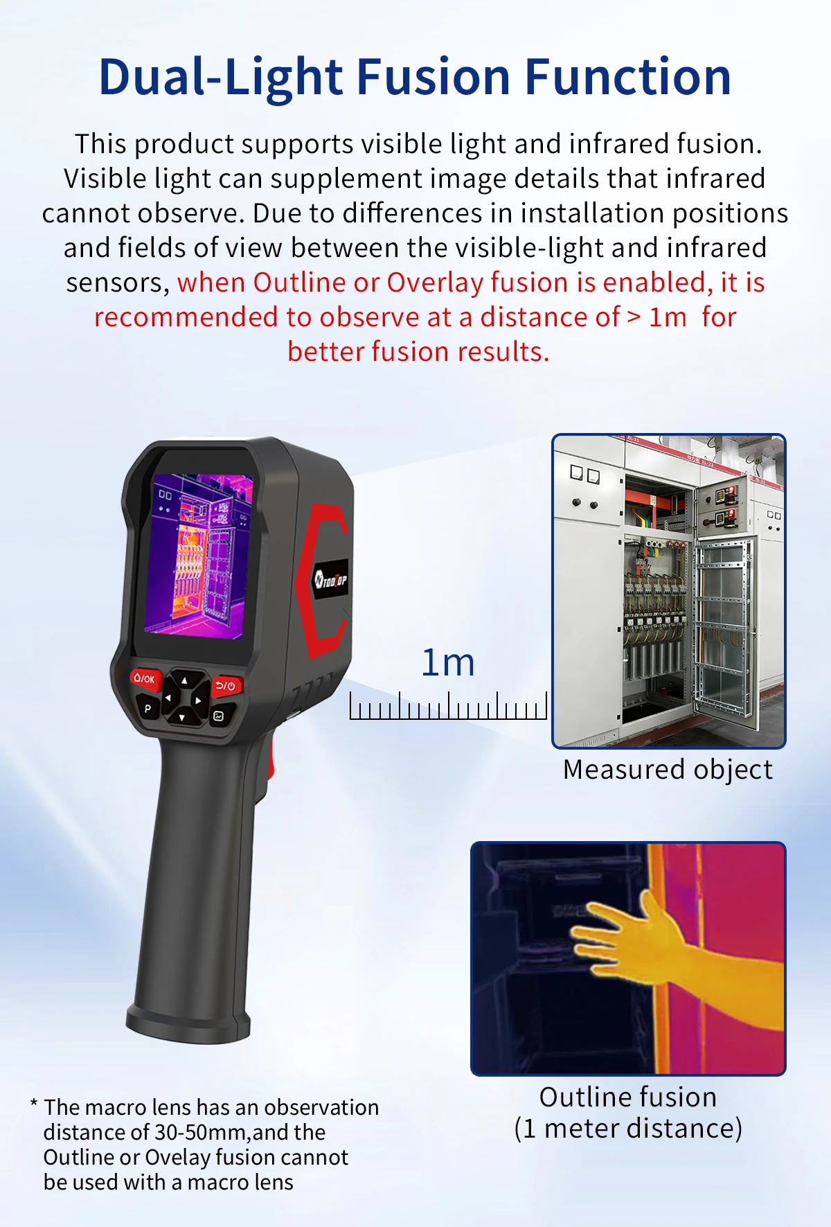 The recommended distance for visible light fusion effect is 1m-5m. Please do not use it too close as it will exceed the range of Offset adjustment