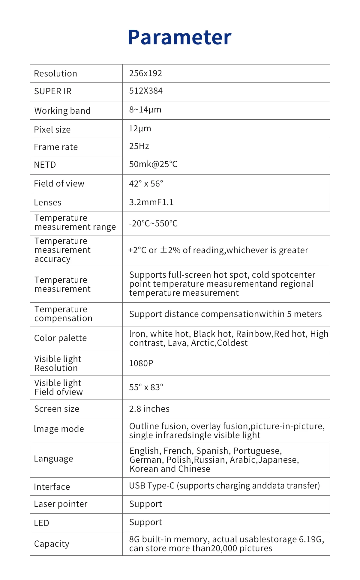 Temperature measurement accuracy:±2℃ or ±2% of reading, whichever is greater