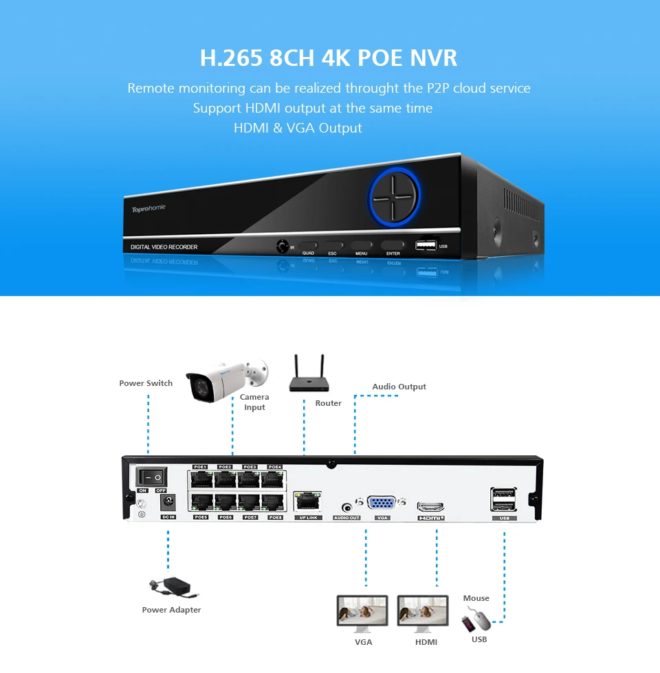 1 x H.265 4CH / 8CH 4K POE NVR built-in 8 POE port