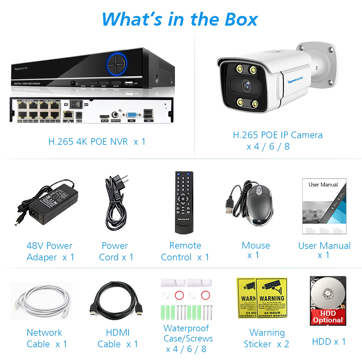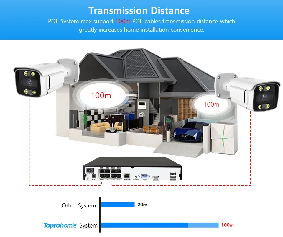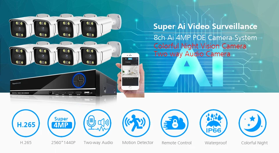 * Our NVR is 4CH 8CH 4K POE NVR, And The Cameras All Are H.265 4MP