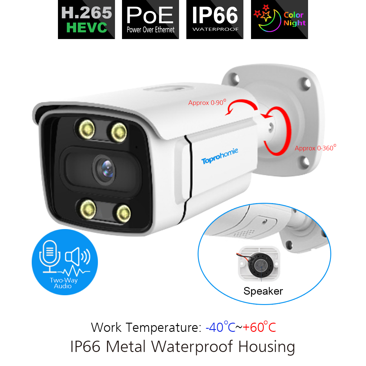 * All Cameras Are Built-In Microphone And Speaker, Support Two-Way Audio Sound Recording.