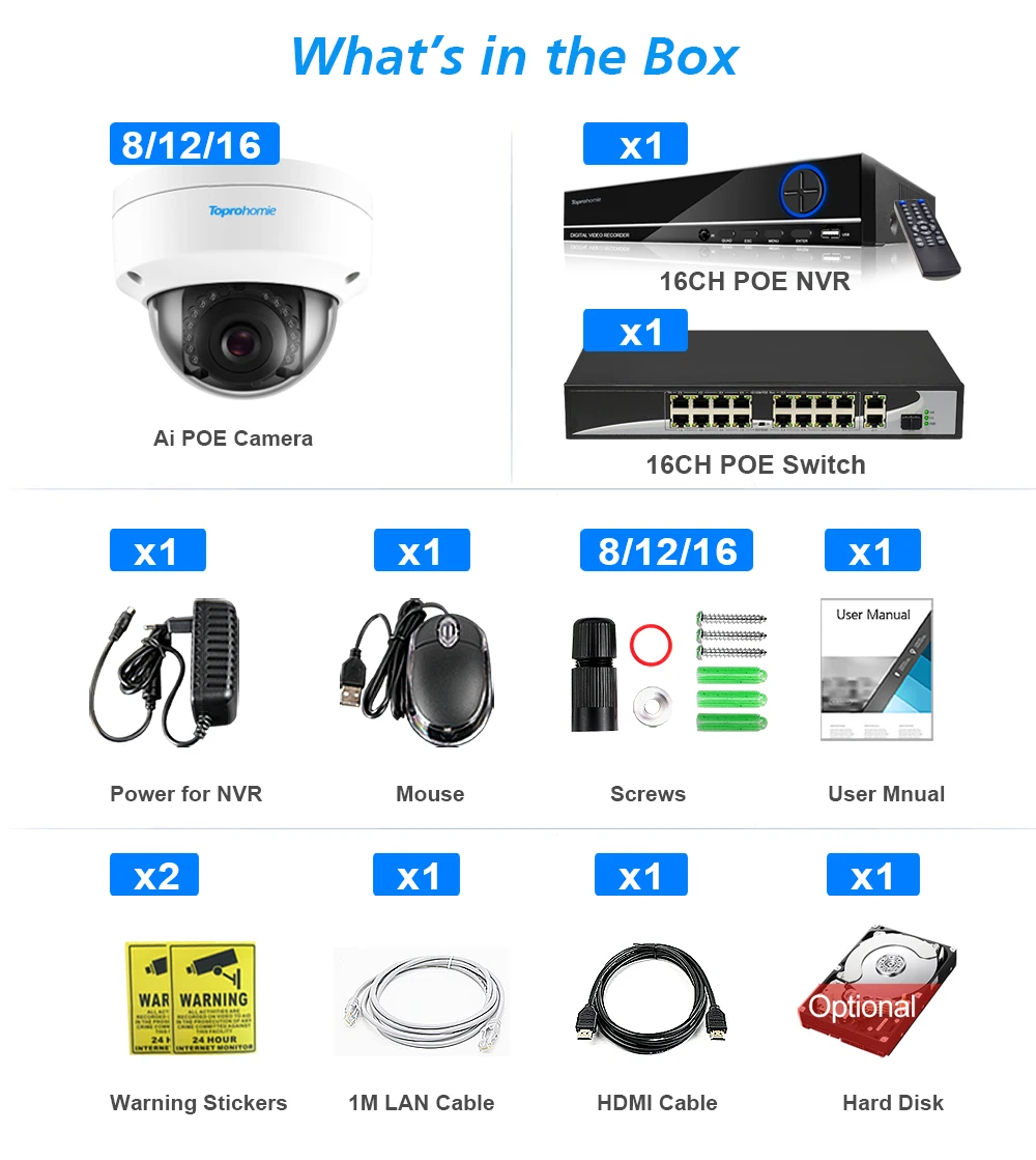 TOPROHOMIE H.265+ 16CH CCTV Security Camera System 5MP 4MP POE Indoor Outdoor VandalProof Audio IP Camera Video Surveillance Set