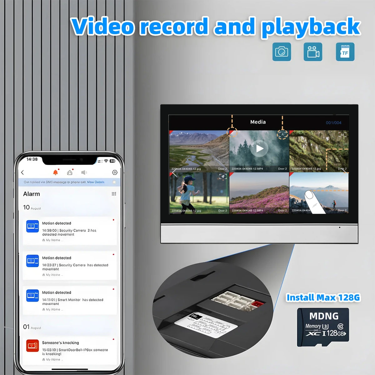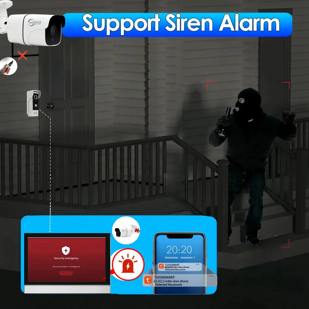 The Montor supports outdoor doorbell Camera +CCTV AHD Camera, dual security monitoring, More safer and more comprehensive monitoring of every corner of the house , and support Montion detection function, and your phone can receive the alert, increased cctv Anti-tamper Alarm function, so that thieves have nowhere to hide, providing a safe living environment