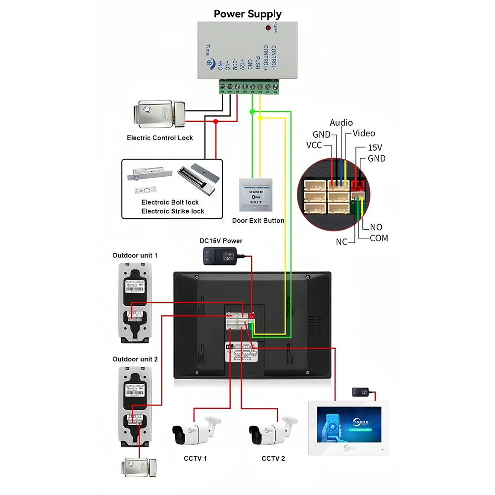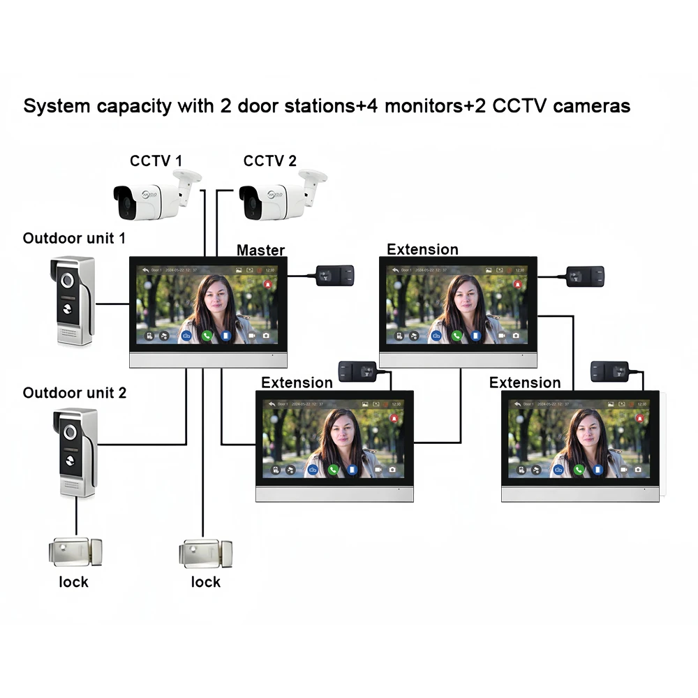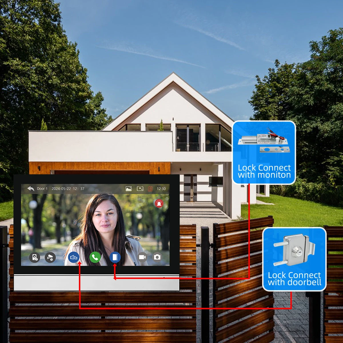 This video intercom can connect to many electric locks. You can open the door with the indoor monitor and Doorbell Camera. Very convenient!