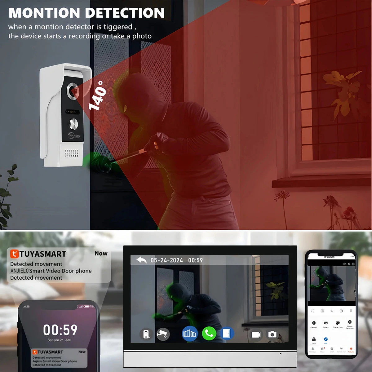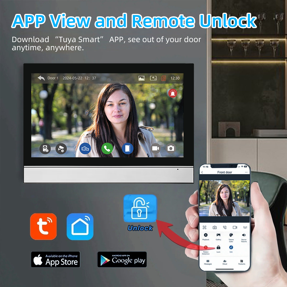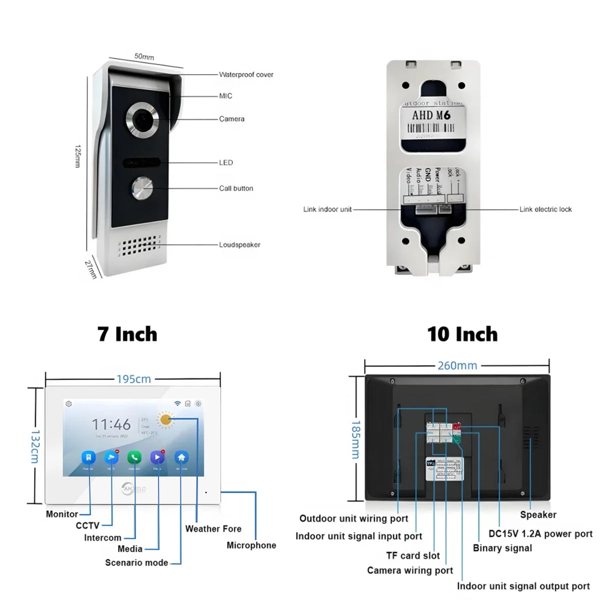 Tuya 1080P 7/10 inch color touch screen WiFi doorbell intelligent APP intercom kit with mobile detection 128G Image storageProduct introduction: