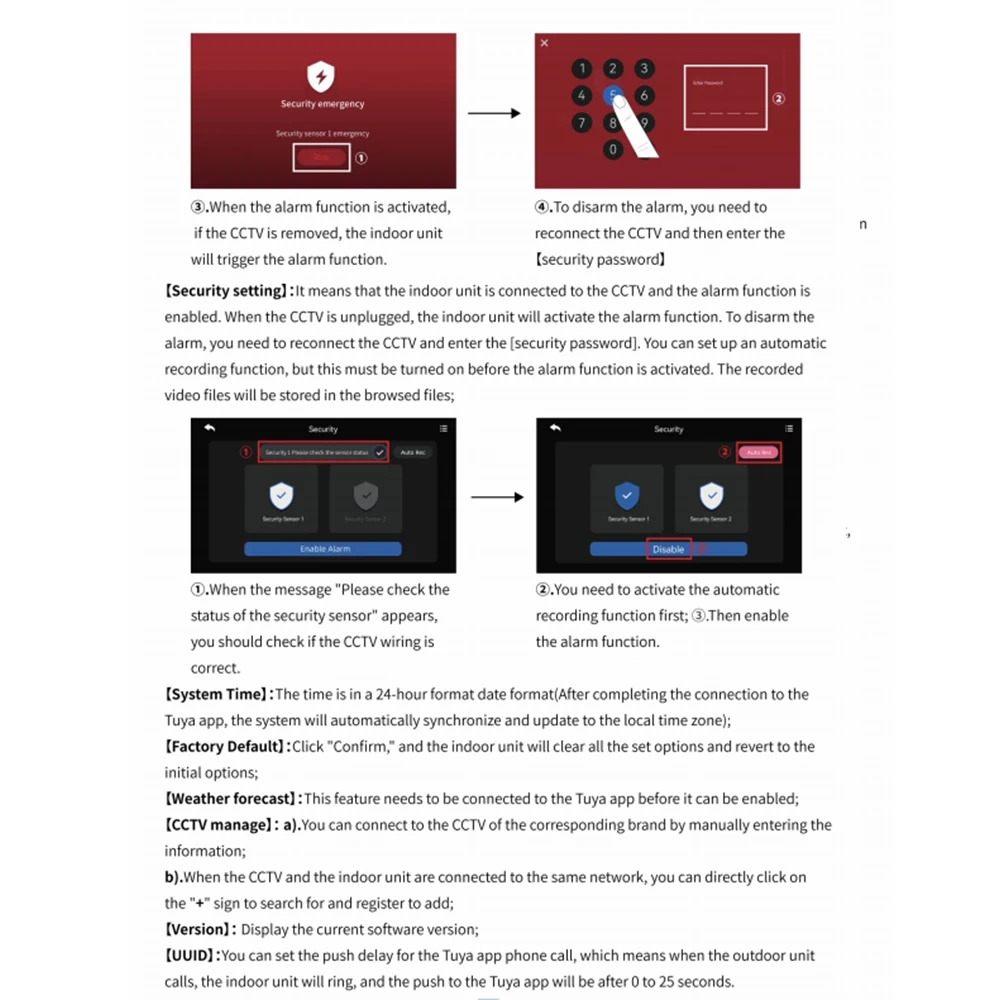 The monitor At home ,leave home , sleep home-3 models;If there no one at home, you can set “NOT AT HOME”, when visitors press call button, he will receive a voice message,Please leave message.(need insert SD card)Cctv Anti-tamper Alarm