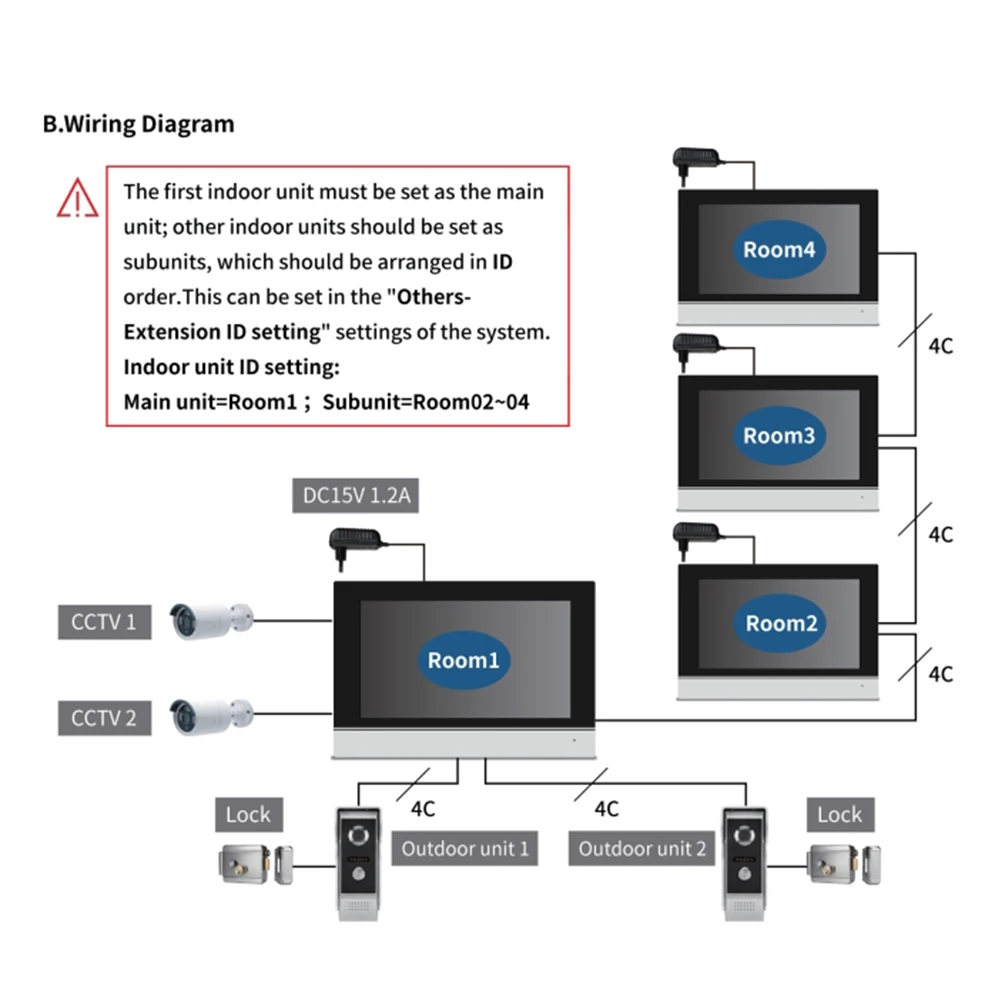 ♦Support 2 call panel + 4 indoor monitor + 2 IP camera