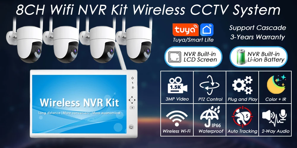 Tuya 5MP HD H.265 PTZ WiFi IP Camera 8CH Wireless 10.1-inch LCD Monitor NVR Kit Home Security Video Surveillance Camera System