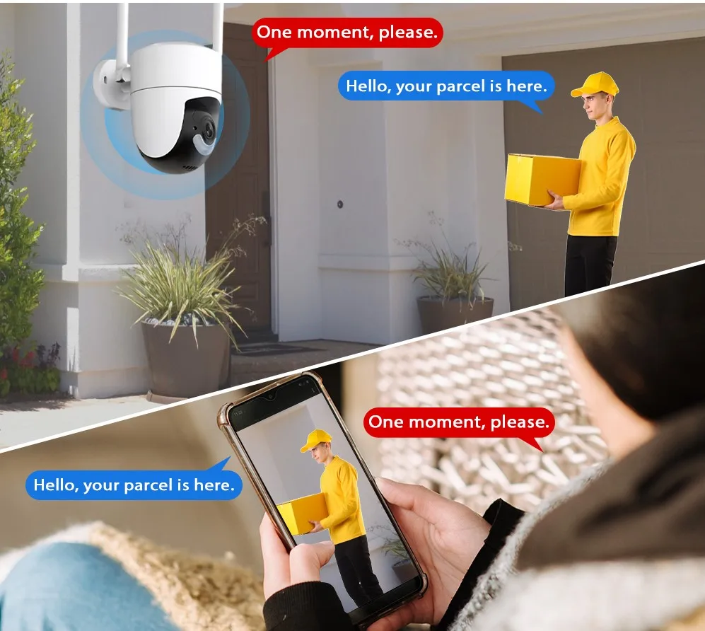 Camera is built with microphone and speaker. So you can talk to your kids via your Smartphone remotely whenever you want..