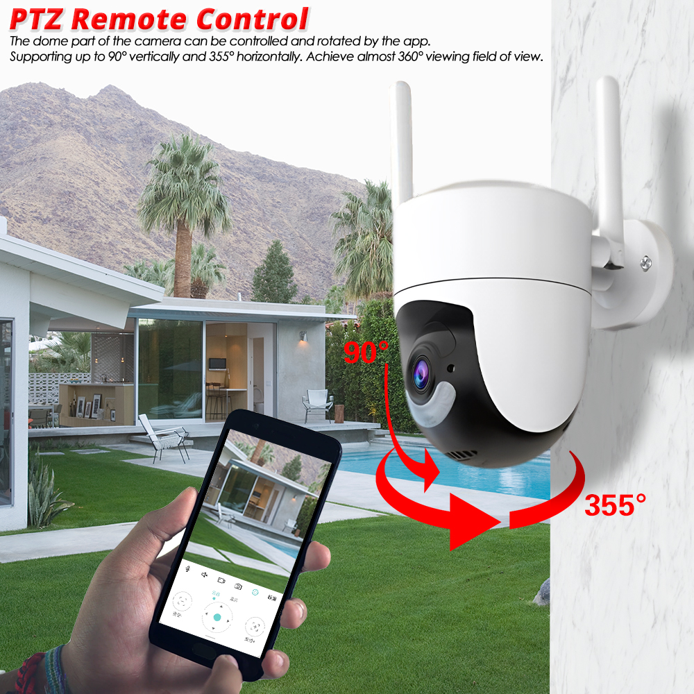 This camera can rotate 355 degrees horizontally and rotate 90degrees vertically.The mobile phone can control the rotation angle of the gimbal and see the direction you want to see.