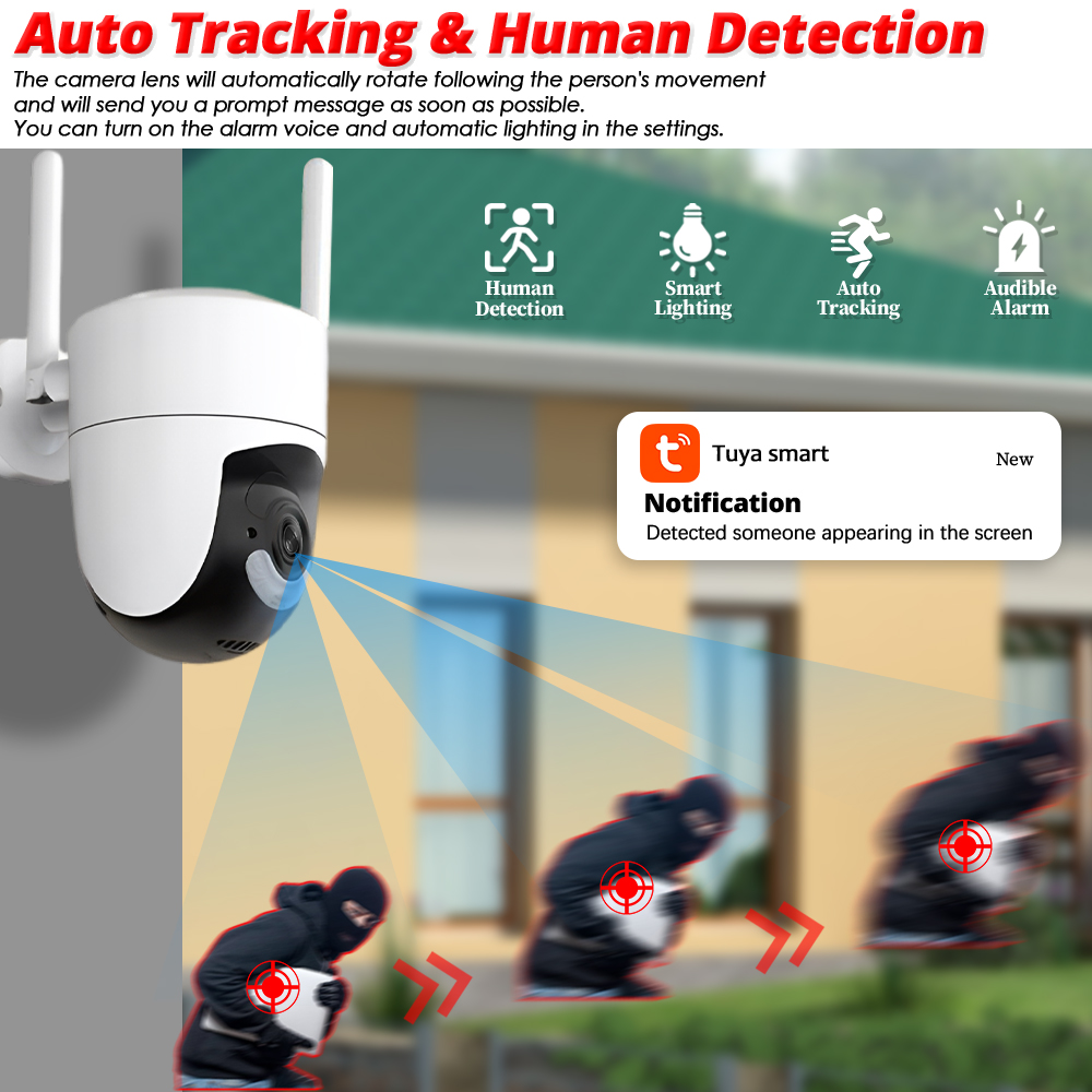 Can set up the area you want to control,When it is triggered,it will send message to your email ,You can get the first hand information ,no matter when and where you are .
