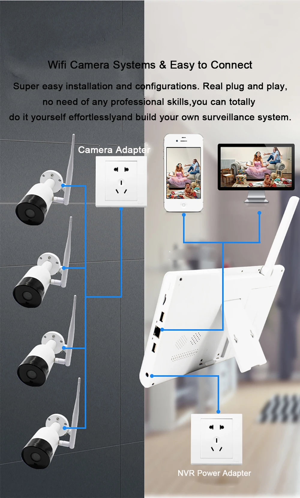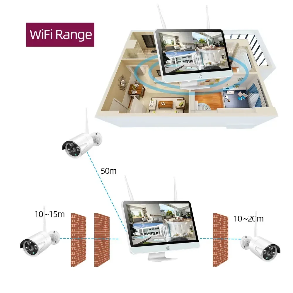 Wireless connections between cameras and NVR,Up to 50 Meters Wireless Transmission(no obstacle)