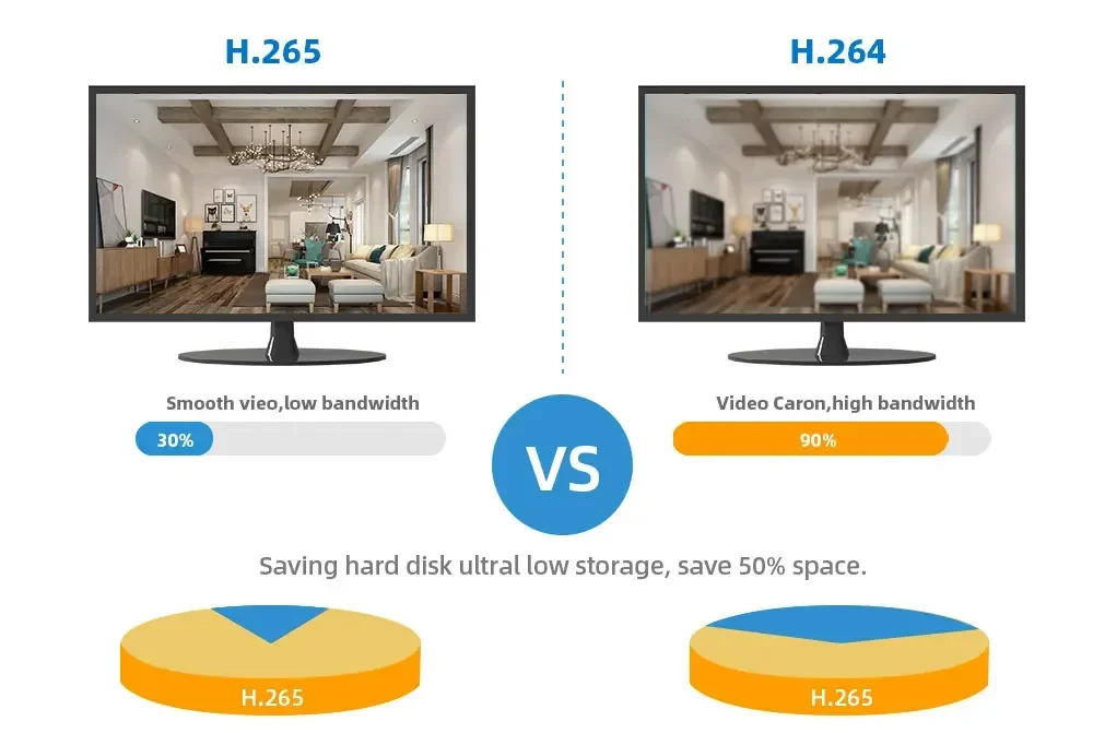 H.265More Clear , HD resolution offeryou best image qualityin a lower bit rate.Save more storage space,can reduce 40%-50% file size,save your HDD storage space and reduce your purchase cost.