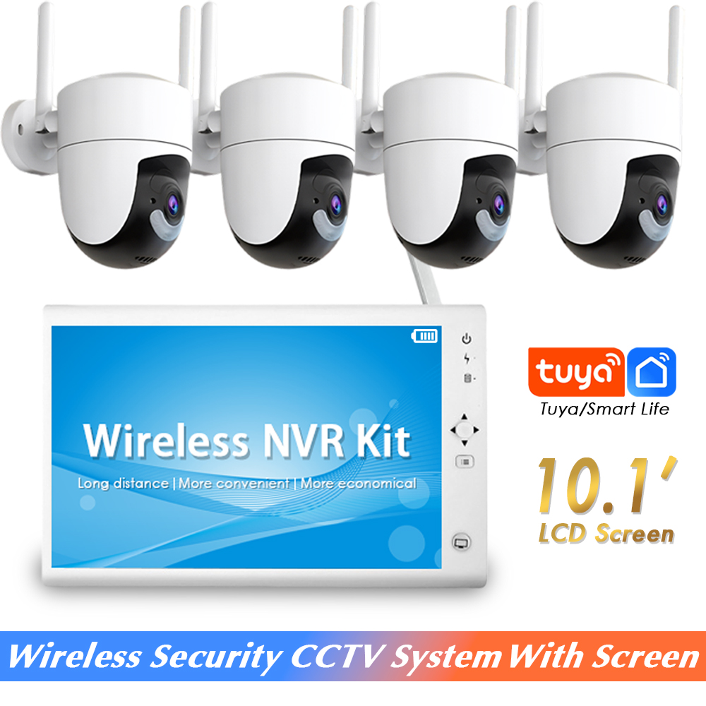 Tuya 5MP HD H.265 PTZ WiFi IP Camera 8CH Wireless 10.1-inch LCD Monitor NVR Kit Home Security Video Surveillance Camera System