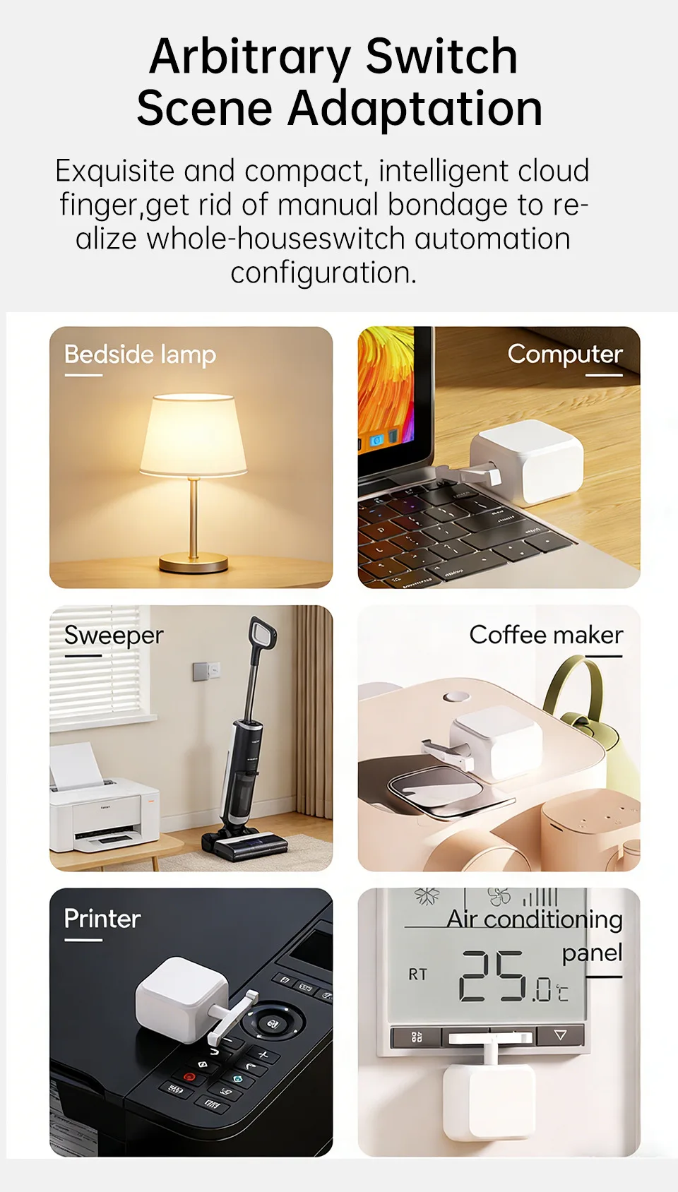 Switch Robot is a smart device that helps users control the switching of electronic devices automatically and wireless ,make the home switches be smart controlled by network .