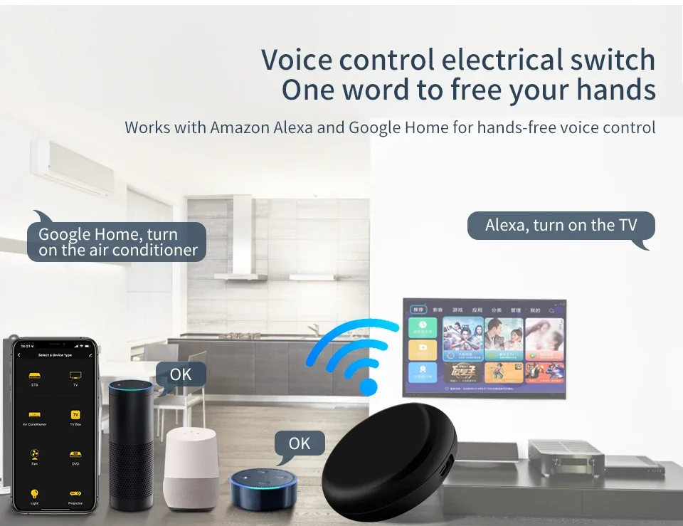 Remote Control your home appliances by using “Tuya Smart” App in your smart phone anywhere anytime. For example: Switch on home A/C in advance, enjoying the comfortable temperature once you get home.