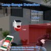 【Loud Siren & Sensitive Motion Sensor】The solar alarm motion detector has a sensing angle of 110°, it will detect any movement within a range of 9-12 meters(Affected by the environment).The siren sound is 120db which can protect the places you need security alarm from intrusion.