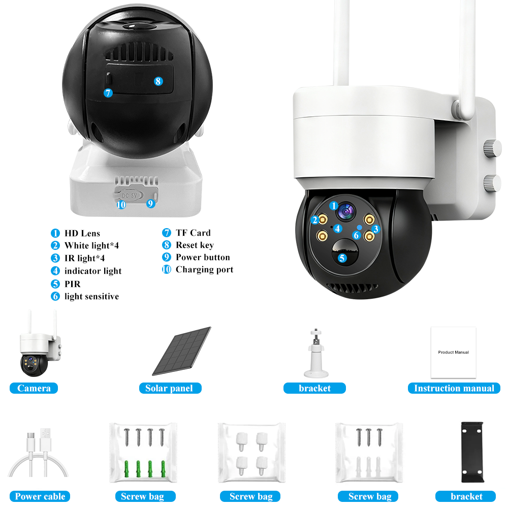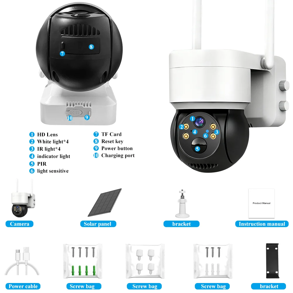 Tuya Solar WiFi Security Camera Outdoor Wireless 5MP Low Power Battery PTZ Camera PIR Motion Detection CCTV Video Surveieillance