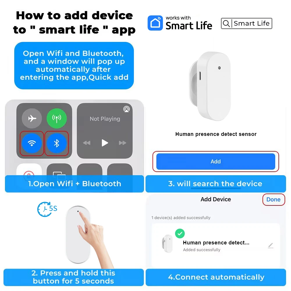 Tuya WiFi Human Presence Detector 24GRadar Distance Detection Smart Human Body PIR Sensor Support Home Assistant