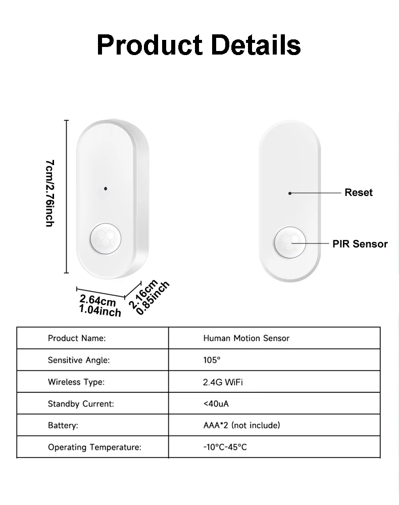 Option”A”: 1pcs *Tuya Wifi Motion Detector (battery not include)