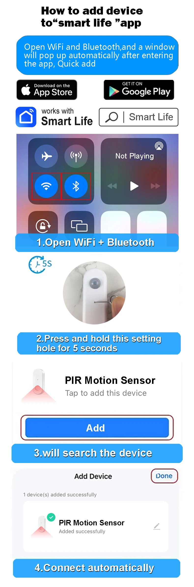Option”E”: 10pcs *Tuya Wifi Motion Detector (battery not include)