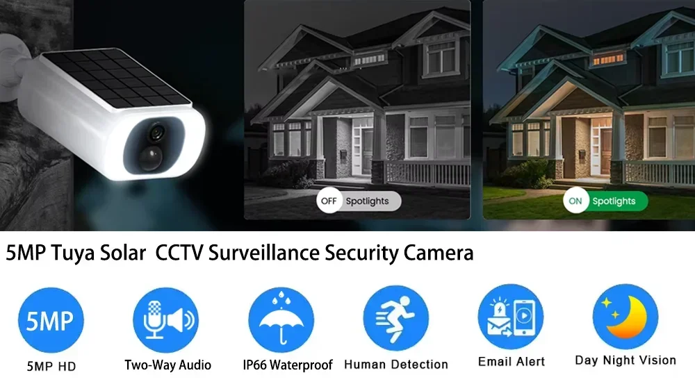Tuya Wifi Solar Bullet Camera Outdoor 5MP Waterproof Battery Powered CCTV Surveillance Security Camera Wireless 2 Way Audio