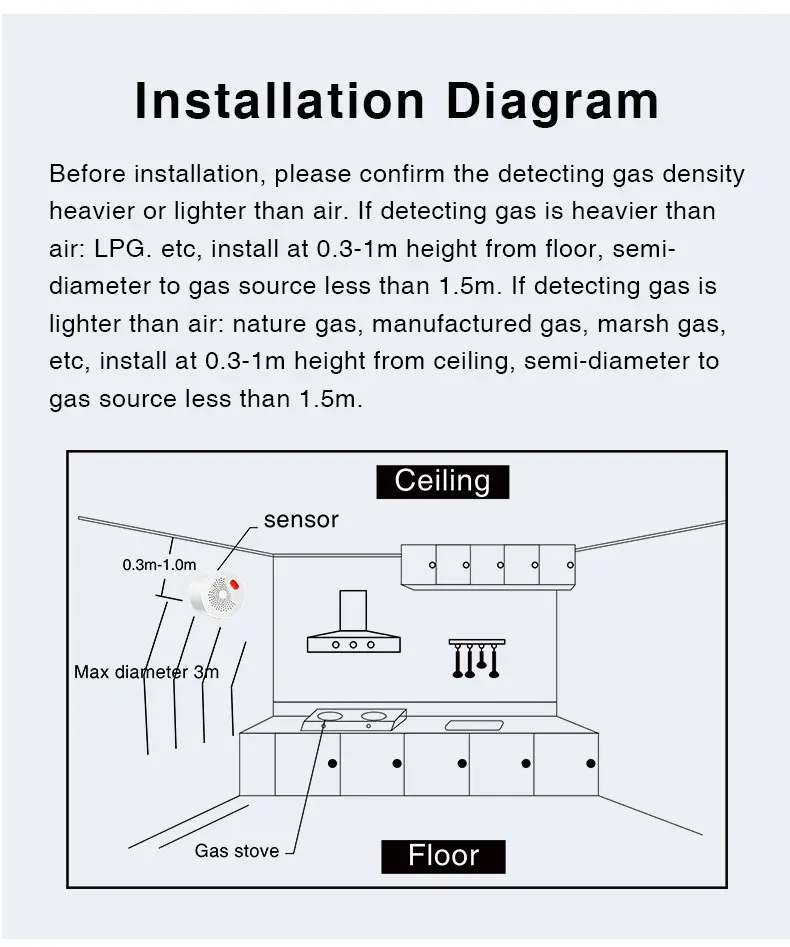 【Loud Alarm】When gas is detected, this alarm sensor emits a loud alarm to alert you and your family to the potential danger.