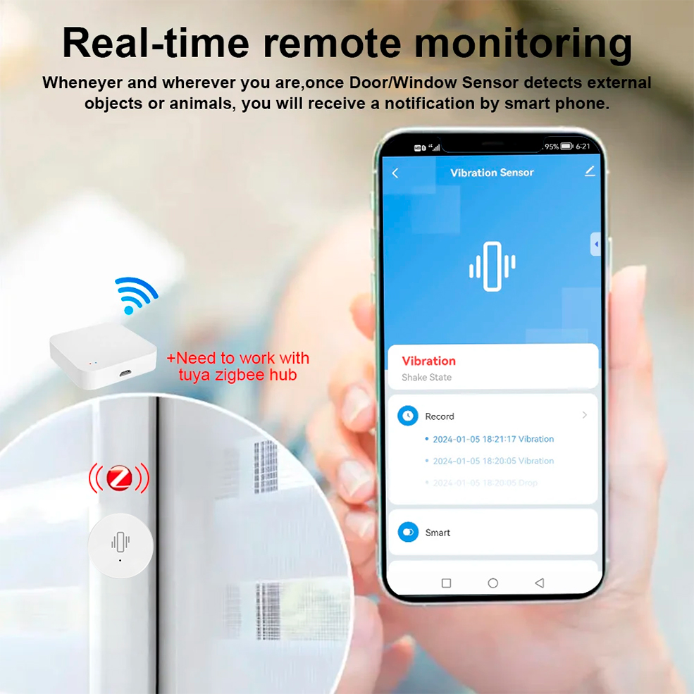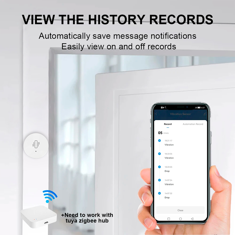 Note:This Zigbee Vibration Sensor must work with Tuya Zigbee gateway(Hub). It cannot connect to WiFi router directly.