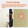 You can create scene linkage with other tuya smart devices.When someone open/close the door,the alarm will be triggered with sound,and push real-time alert message to your mobile.