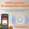 100dB alarm sound will be triggered when device status change and push alarm message to your mobile.