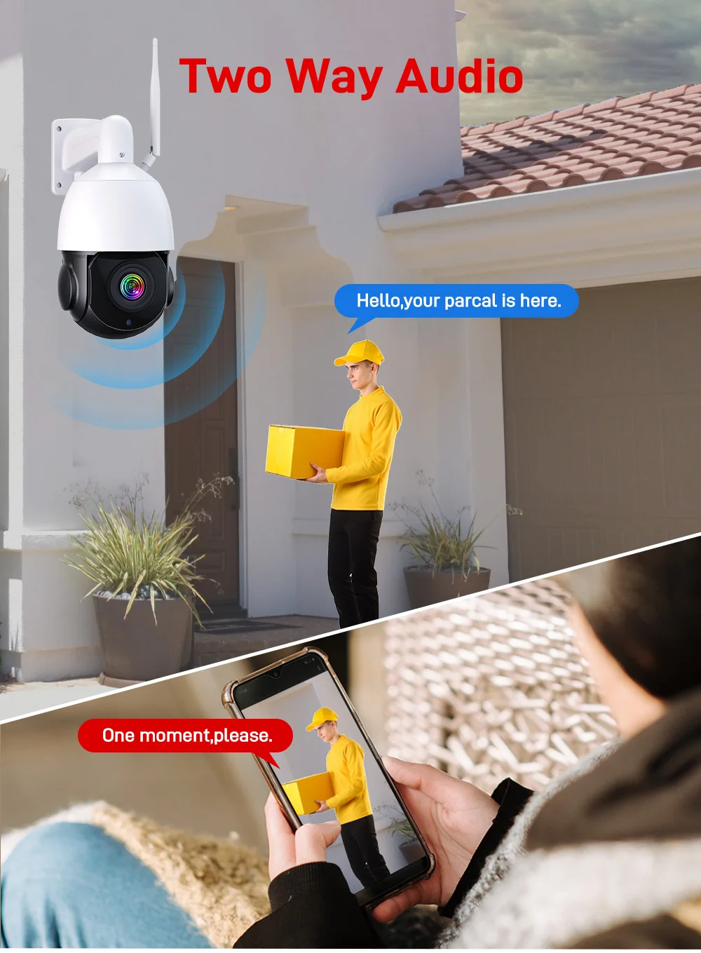 Two way audio wireless WiFi 8MP IP PTZ camera Outdoor AI Human auto tracking with SD card 4K PTZ 30X Zoom