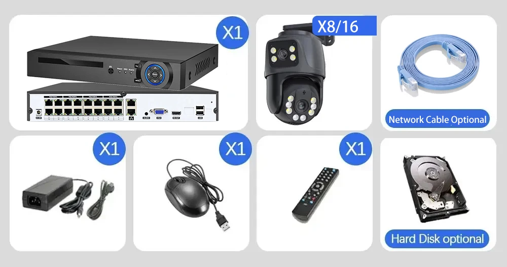 Ultra 4K 8MP Definition Outdoor POE Security PTZ Dual Lens Camera 16CH NVR System CCTV Outside Home Video Surveillance Systems