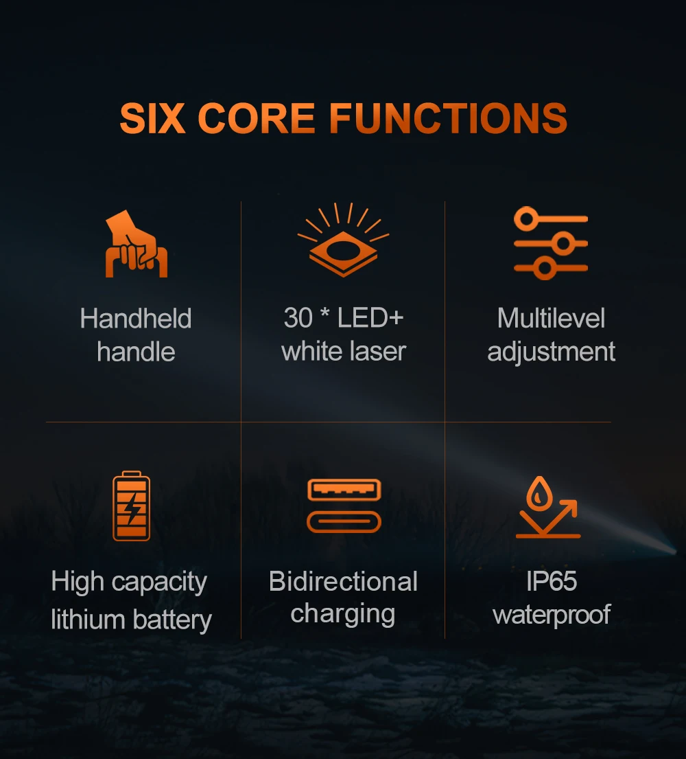 Lumen: Extremely bright 10050LM, Flood intensity 9300LM, Medium 4050LM, Weak 600LM, High beam intensity 1345LM, Medium 670LM, Weak 120LM