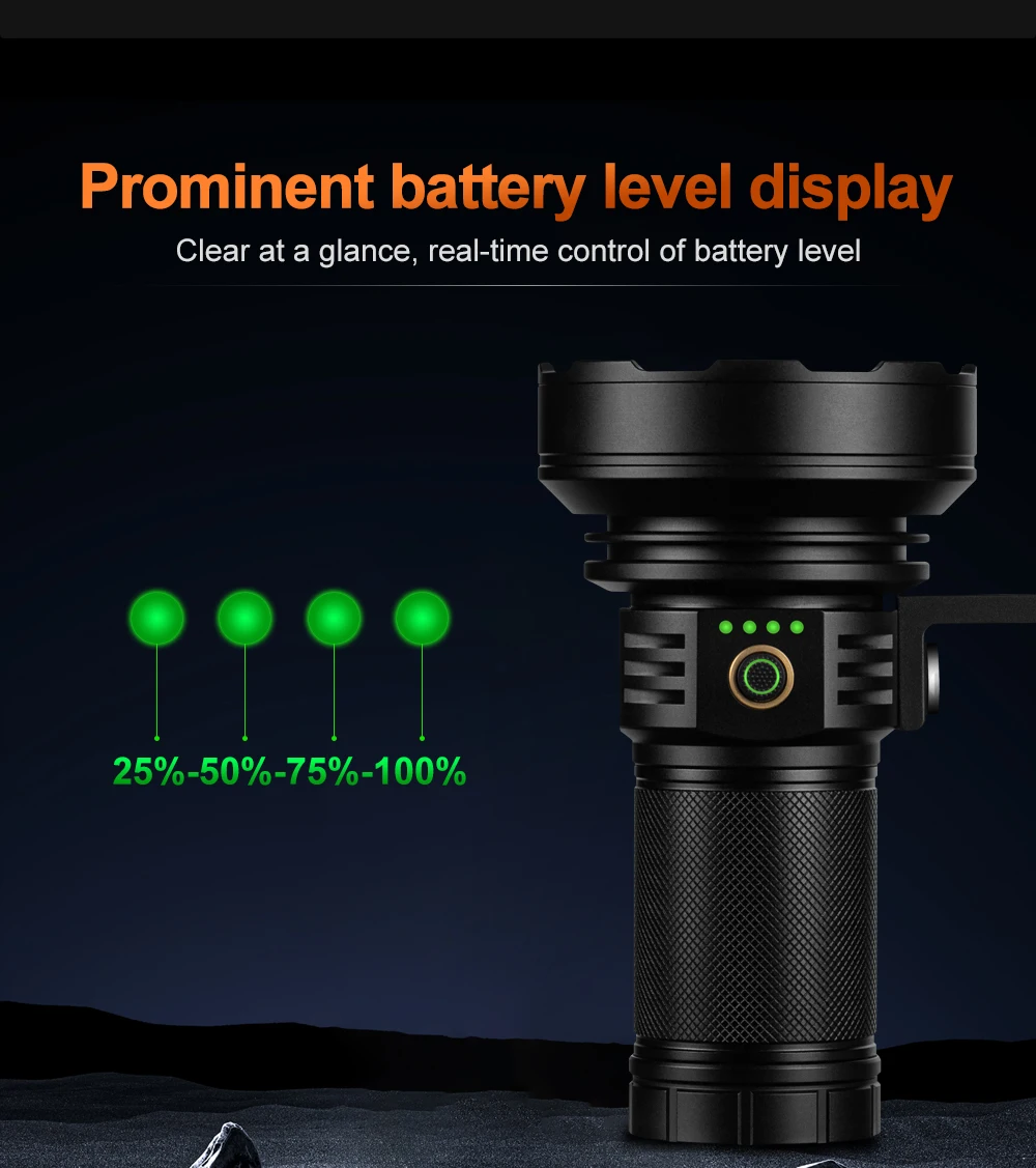 3.Quickly press the power button 4 times to lock/unlock the flashlight.(Press the power button quickly 4 times, and the flashlight light will flash three times to indicate that it is locked. To turn on the flashlight again, you must press the power button quickly 4 more times, and the flashlight light will flash three times to indicate that it is unlocked)