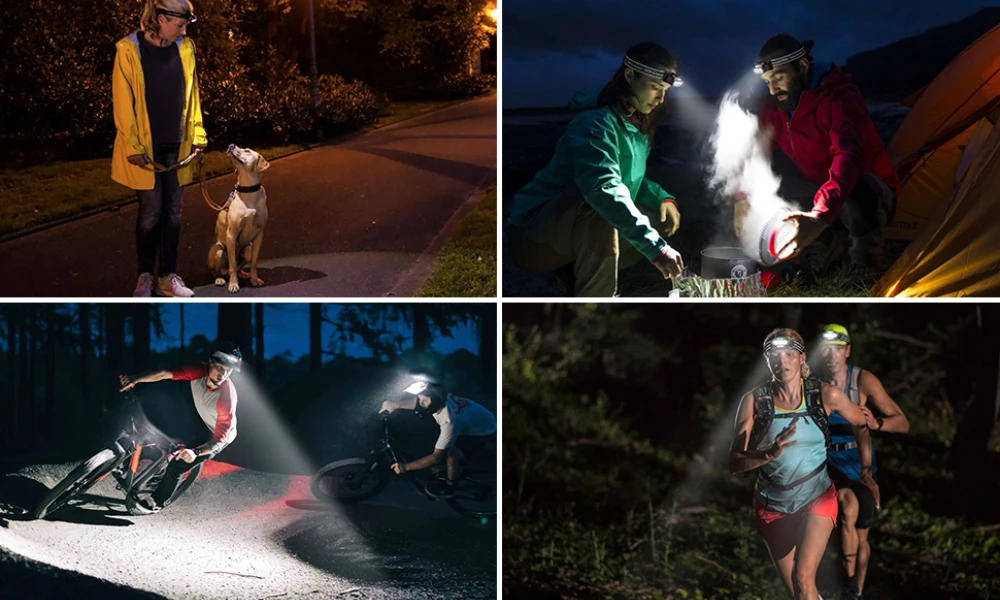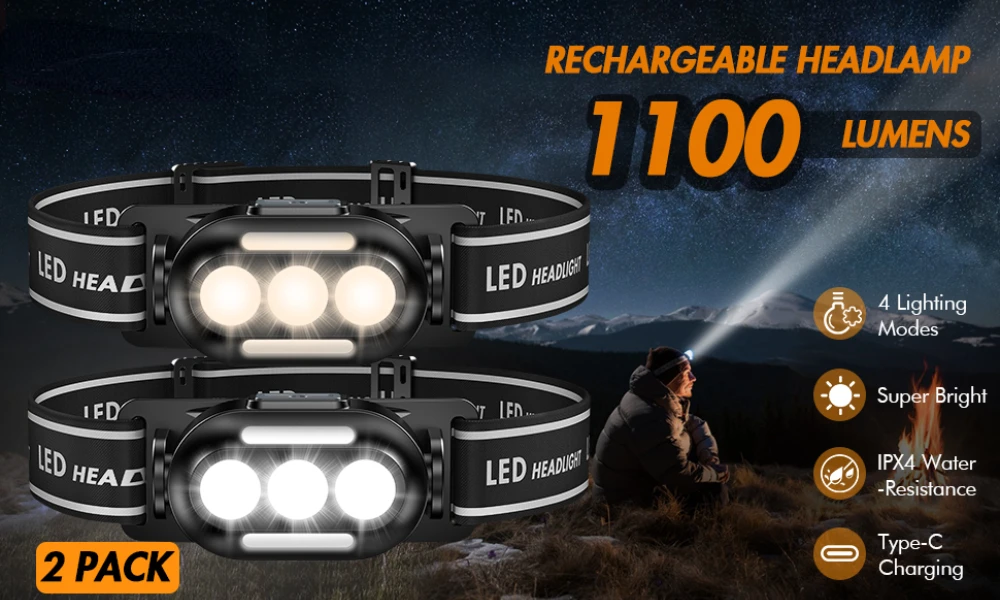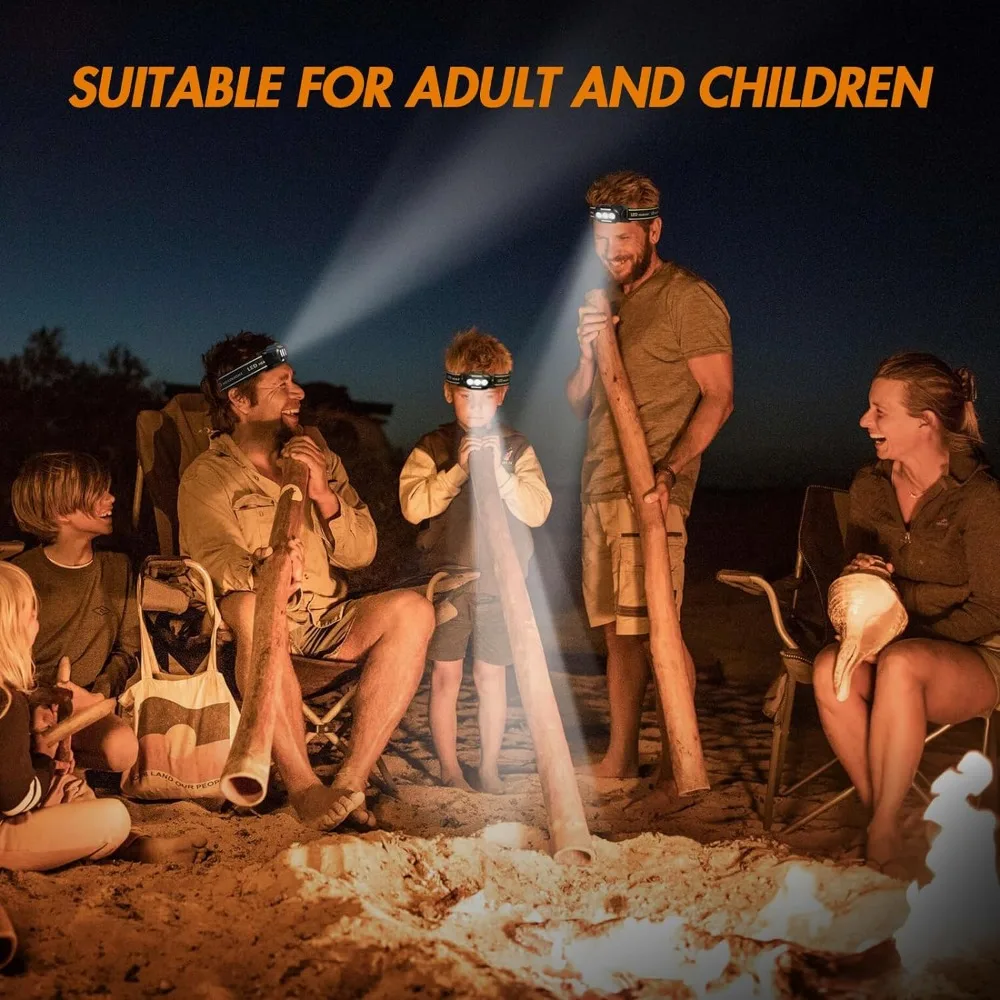 This headlamp flashlight has IPX4 waterproof rating, suitable for use on rainy or snowy days, indoors or outdoors. Suitable for hiking, running, camping, hunting, fishing, etc.