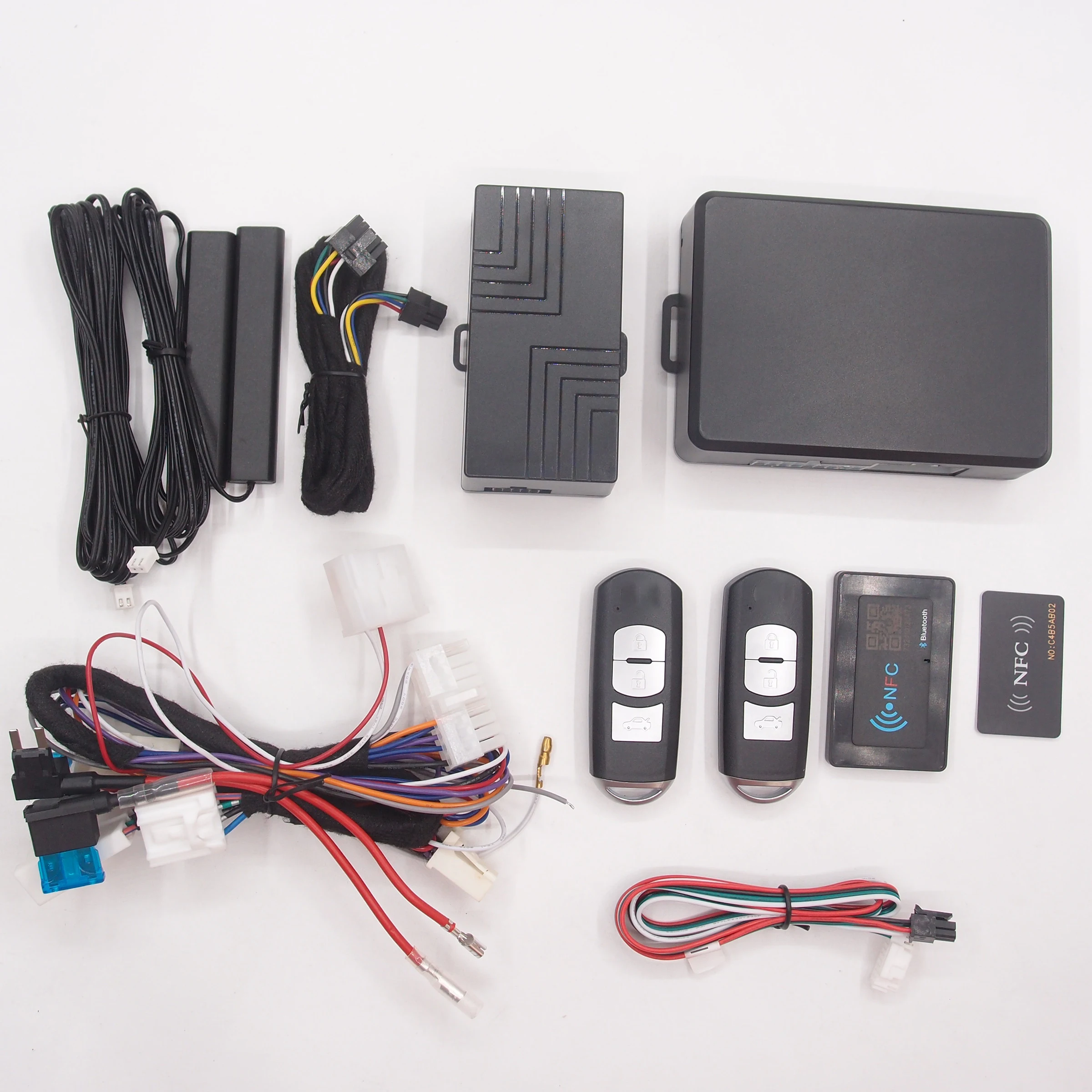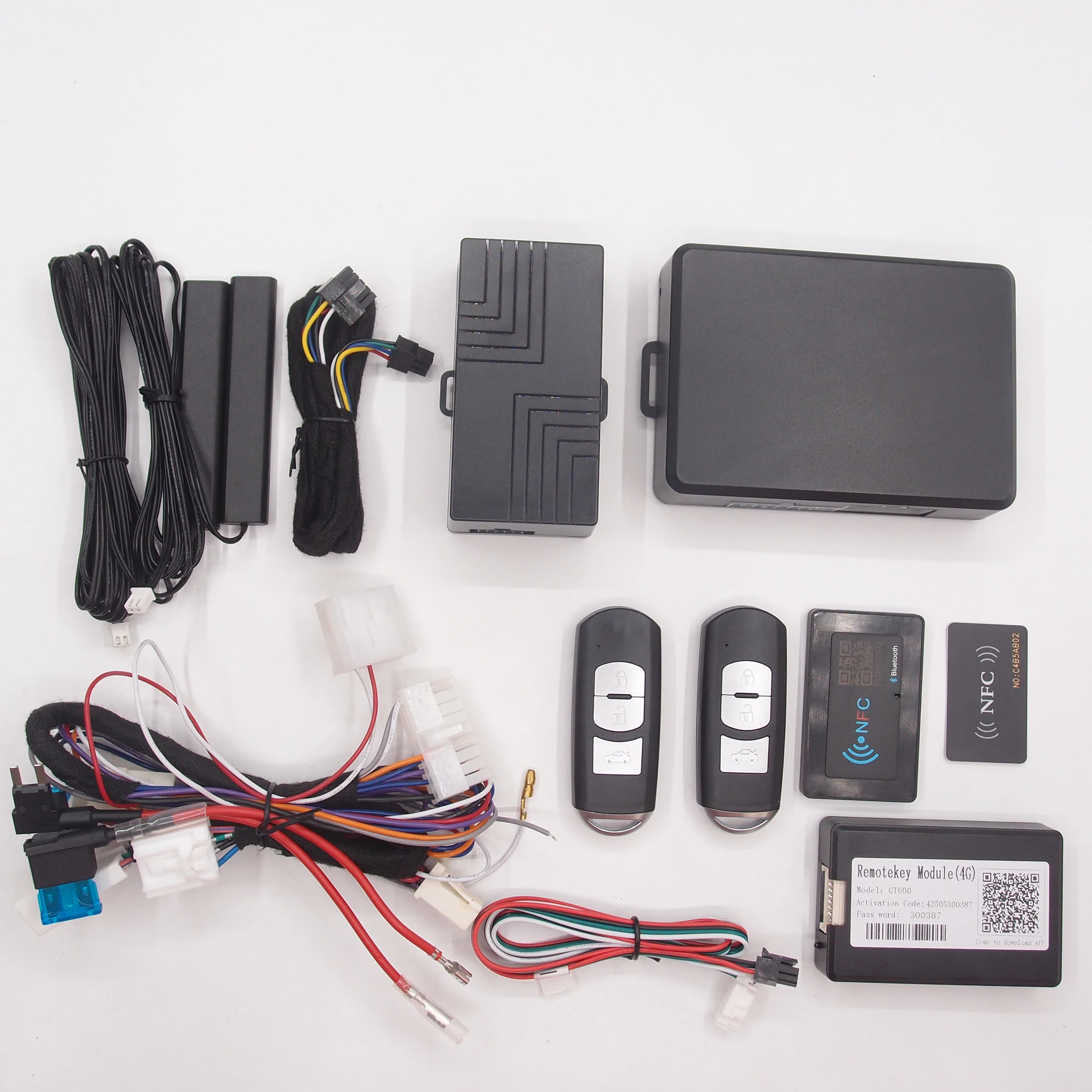 4.NFC has Bluetooth built-in too ,likes as 4G module , it can use APP to do lock, unlock and remote start too . and there is a NFC card to swipe for locking and unlocking, it can add NFC card into your smart phone if it supports NFC function, Swipe smart phone like as NFC card . Don't worry about your phone running out of battery
