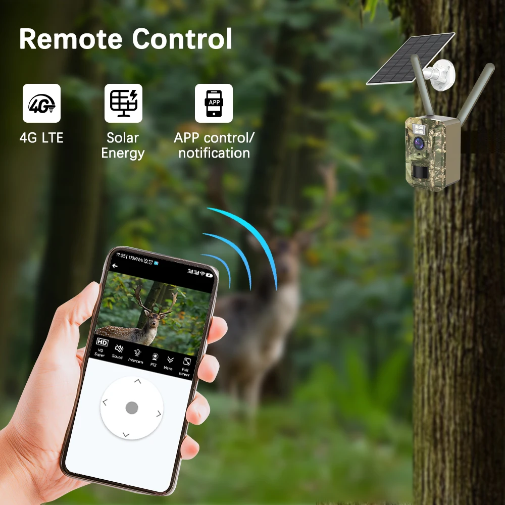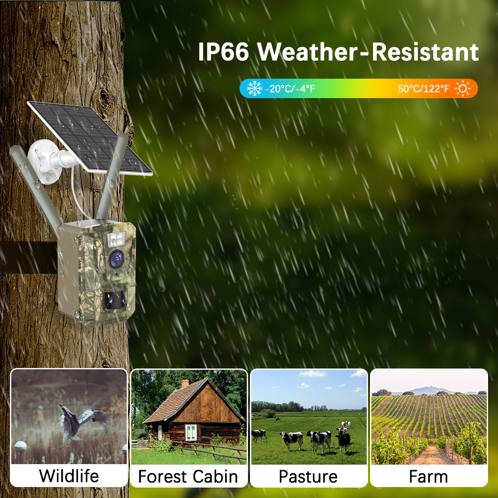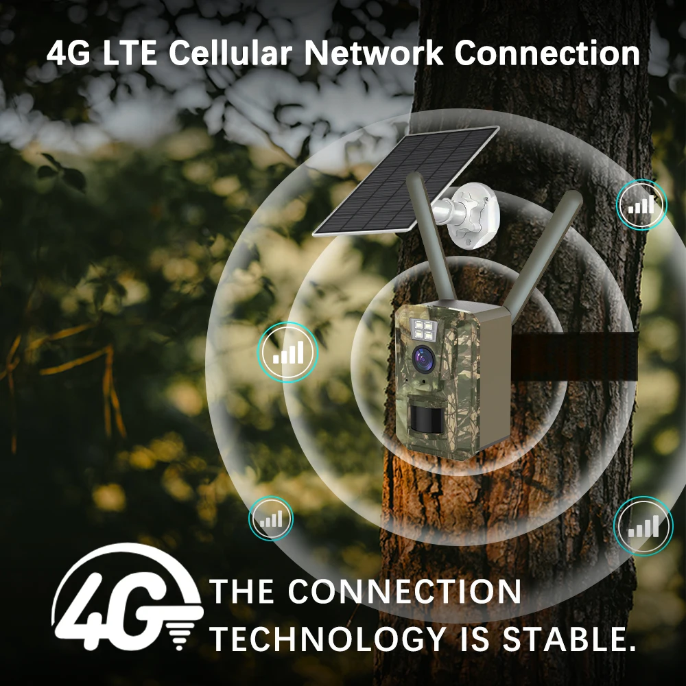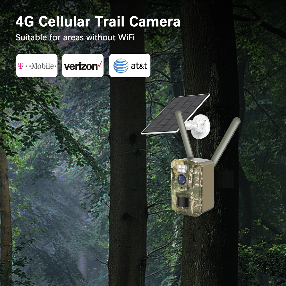 US 4G Cellular 3MP 2K Battery Solar PIR Motion Activated Wildlife Hunting Trail Camera IP66 Outdoor Night Vision