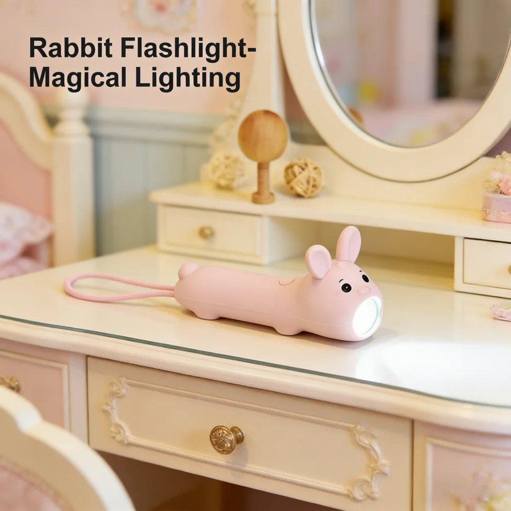 USB Rechargeable Kids LED Flashlight Cute Bear Rabbit Night Light Portable Bedside Lamp for Children Outdoor Camping Gift Toys