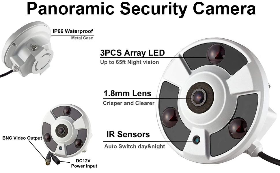 1.7mm fisheye Panoramic 360 degree CCTV camera