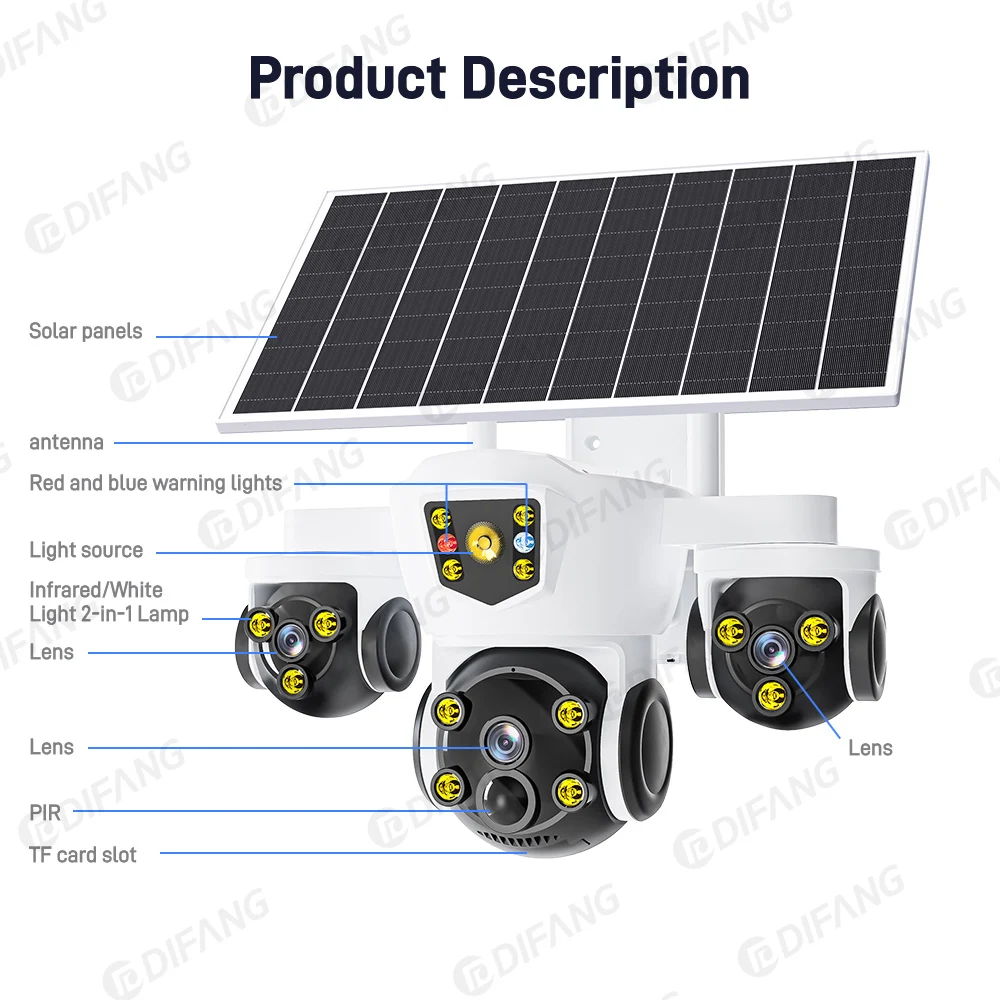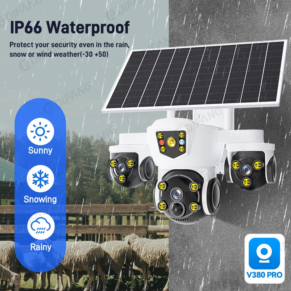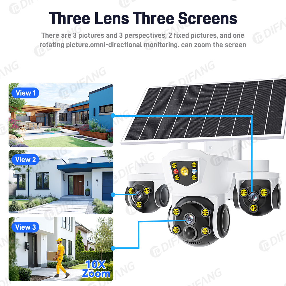 V380 Pro WiFi IP Solar Camera Outdoor Triple Lenses Triple Screens Security Video Monitor Night Vision Waterproof CCTV Cameras